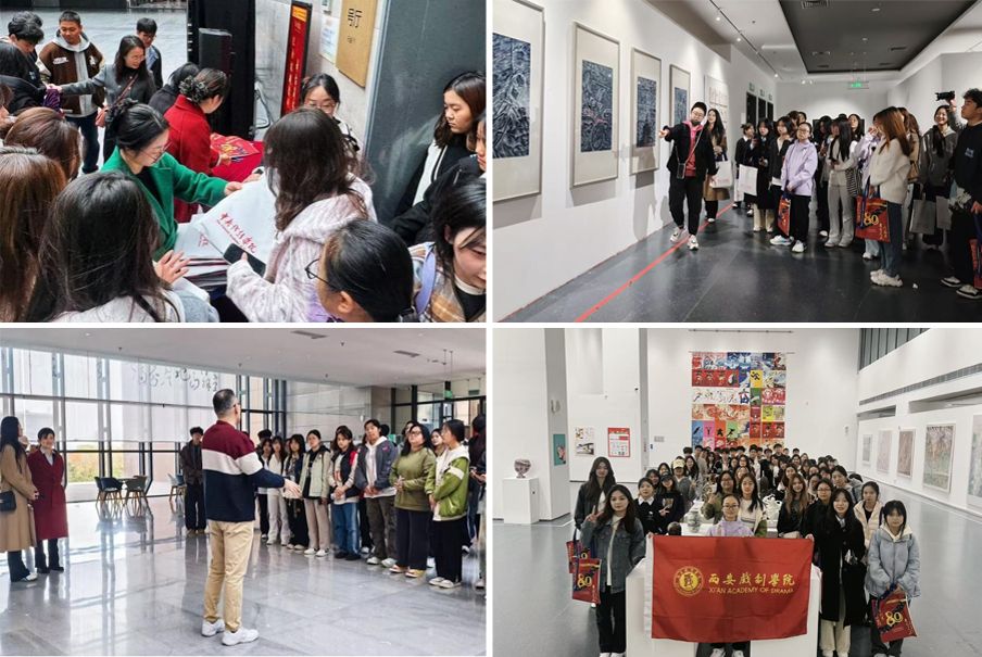 在西安浐灞丝路国际艺术中心,师生们在此回望峥嵘岁月,感悟舞美力量,重点观摩了《纪念抗战胜利80周年舞台美术作品展》。工作人员为师生们做了详细讲解,展览中一幅幅设计手稿、一个个精巧模型、一幕幕场景再现,不仅展现了舞台美术技术的精湛,更无声地诉说着那段波澜壮阔的历史,让同学们深刻体会到舞美艺术在叙事抒情、塑造精神风貌方面的强大感染力,理解了艺术服务于人民、服务于时代的优良传统。