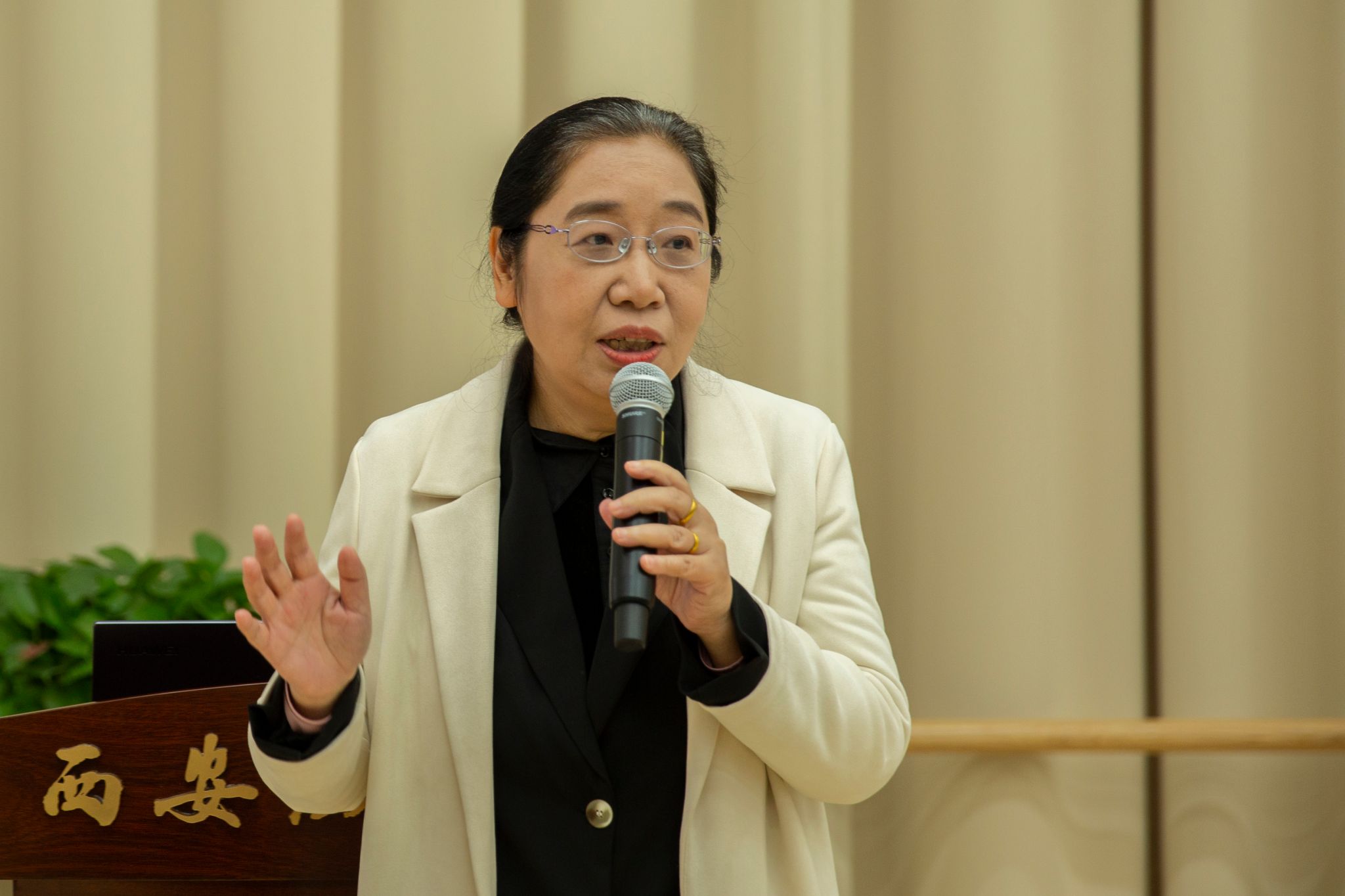 讲座由戏剧文学系负责人张体坤主持。讲座中,张勇老师结合自身丰富的创作经验,对谍战剧的创作技巧进行了系统阐述。她首先强调,谍战剧创作必须植根于真实发生过的历史,需要创作者进行大量的阅读与案例发掘,并明确了谍战剧创作中必须遵守的“红线”,这些原则为创作划定了严谨的边界。